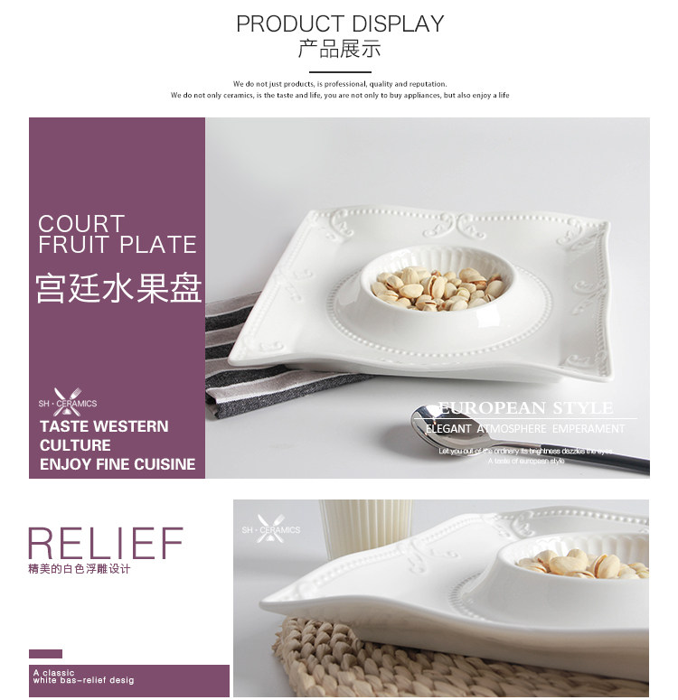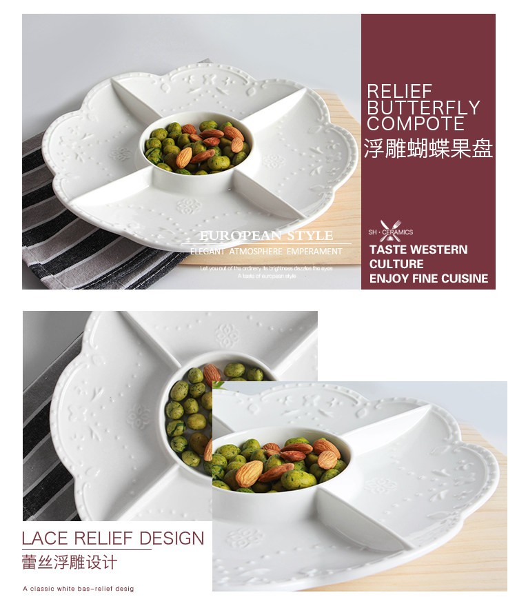 陶瓷餐具五果盘子甜品糖果分格托盘拼盘糕点盘水果拼盘点心盘摆盘