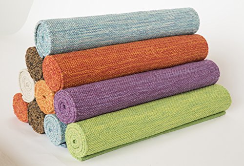 How Eco Friendly is your Yoga Mat? The rugs are made of recycled cotton rags acquired from textile mills in India. There is a new choice for yogis who desire a mat that will support their practice in the most sustainable and traditional way. Yogasana has 7 yoga mats that are hand-made of 100% natural cotton. Each mat is 24" x 72" (4" longer than the standard). They are reversible, cold water washable and guaranteed for 15 years. Yogasana has been making hand-loomed rugs in India for over 15 years. We used our expertise with cotton to make a mat dedicated to the practice of yoga. Unlike the ubiquitous 'sticky mats,' Yogasana mats are woven by weavers in the region of India where yoga had its origin. Cotton is the traditional material for a yoga mat because the genesis of the practice predates the advent of plastic. Each mat takes 3 days to weave and 10 days total production time. The pride of craftsmanship is reflected by the signature of the master weaver on each Yogasana mat creating a connection between the weaver and the yogi. Cotton is more durable than rubber. Users who may suffer from allergies are more receptive to a cotton surface. It's more eco-sustainable than other non-PVC materials like TPE (thermoplastic elastomer) and PER (polymer environmental resin) and does not deteriorate in direct sunlight. Cotton provides a superior grip. With a rubber mat, the more you sweat, the more you slip. With a cotton mat, the more you sweat, the more you stick. The mats come in 7 colors. 5 named after the elements: Earth - Water - Fire - Air - Ether.Feature
