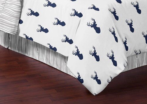 Sweet Jojo Designs Navy Blue White and Gray Woodland Deer Print Boys 3 Piece Childrens Full / Queen Bedding Set