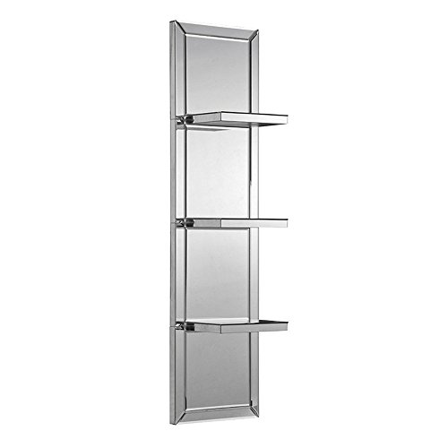 - Rectangular wall mirror with three mirrored shelves
