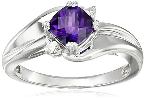 -. Title : 10k White Gold Cushion Gemstone and Diamond Accent ring, Size 7