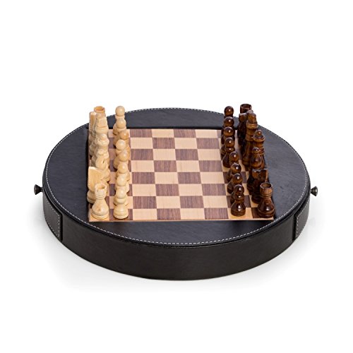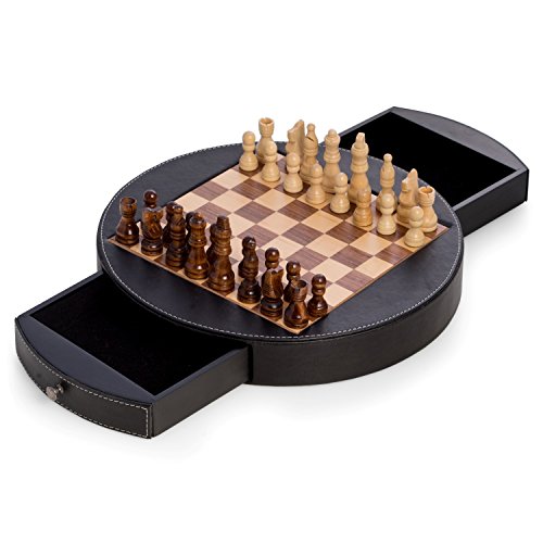 Bey-Berk Chess Set in Wood with Leather Wrapped Around the Playing Board with Drawer for Game Pieces, Black