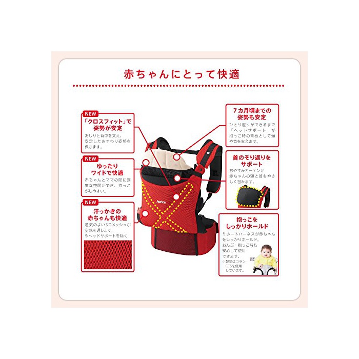 원본상품명: Aprica (アップリカ) 【重2500gから使える】 腰ベルトタイプ 抱っこひも コラン CTS クロスフィット ネイビNV 4WAYタイプ 【もっちり肩パッド & 3Dメッシュ & サポト