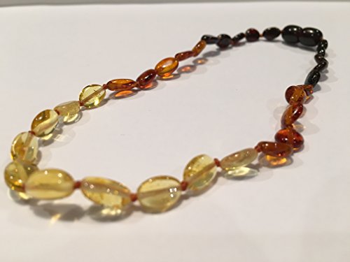 Baltic Essentials 11 Inch Polished Rainbow Milk Cognac Lemon Honey Brown Baltic Amber Necklace, Pop clasp Bean Olive Teething Necklace for Infant...