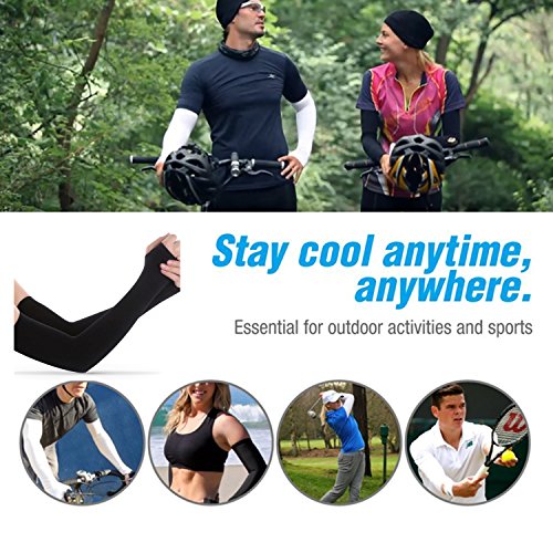 Better Wear Experience & Protection: In summer,definitely feel cool when these sleeves on,but in winter, it can make your arm warmer too , yes , it is so amazing.99.8% UV Protection, got no sunburn or bug bites. Not easy to cause bacteria, fast sweat kick-away and fast dry, make your skin fresh all day. Designed by considering all muscle line of body to protect muscle. Promotes faster muscle recovery and blood circulation. Make your muscle feel comfortable when doing sport.