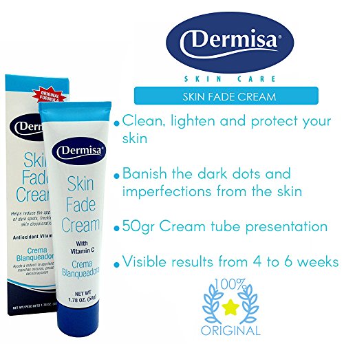 -. Feature : Skin Fade Cream Cream with light contexture totally greasy free with despigmentating double action that effectively helps to gradually bleach the skin dark stains caused for extreme sun exposure. / Gradual lightening of dark spots, age spots and freckles / Antioxidant Vitamin C / Contains moisturizers and sunscreen / Helps even skin tone and discoloration Net WT 1.78oz (50g), SotoDeals.