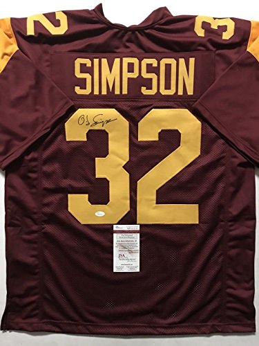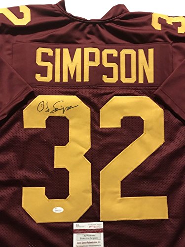 Autographed/Signed OJ O.J. Simpson USC Trojans Maroon Football Jersey JSA COA