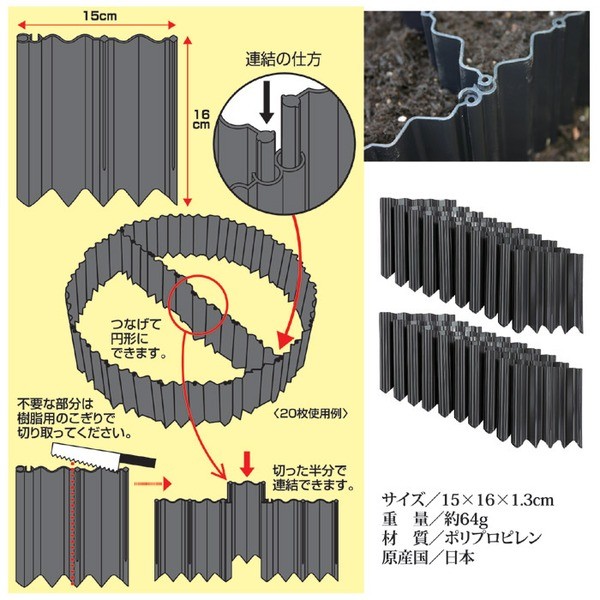 【商品名】土ストッパー(フェンス/土留め/仕切り) 【20枚入り】 ポリプロピレン製 カット可 日本製 〔園芸/ガーデニング用品〕