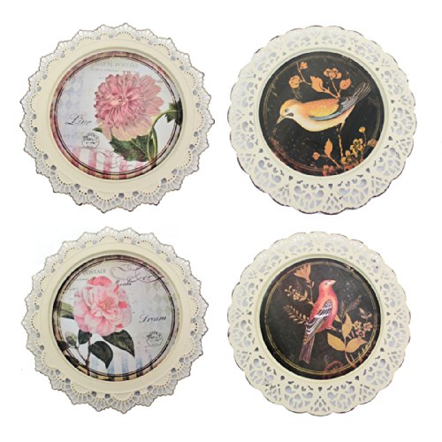 Teton Home WD-087 Birds and Flowers Decorative Plates (Set of 4)