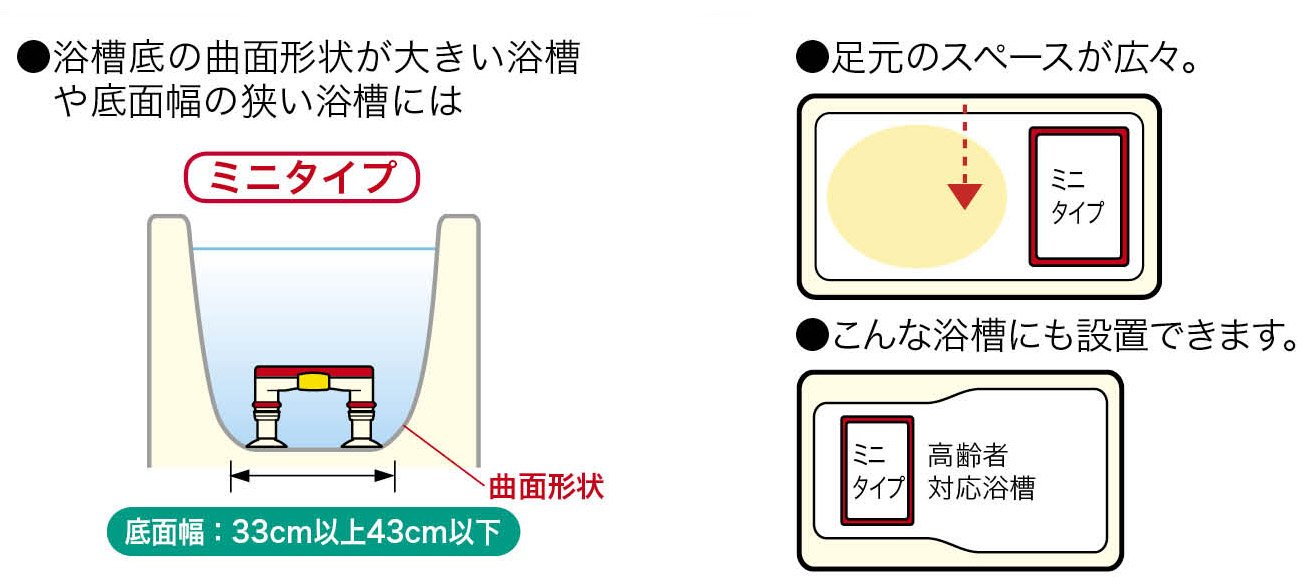 Recommended mini type for bathtub with large curved shape at bottom of bathtub and narrow bathtub at the bottom