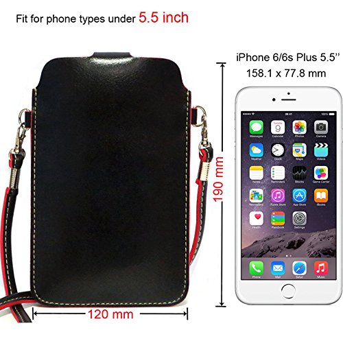 -. Feature : Great for carrying cell phones,money,keys,with this bag helps to keep hands free.Super convenient and cute bag for carrying little stuffs. / Cell phone purse with shoulder strap suitable for women of all ages, great for shopping, quick out, work out, walking the dog, cycling, traveling. Also can be as gift for family or friends. / This stylish cell phone case purse is an absolute perfect fit for your iPhone 6s/iphnoe 6s plus/iPhone 6 or 6 Plus; iPhone5/5S/5C, iPhone4/4s; Samsung Galaxy S7/S6/S5 ; Samsung Galaxy Note 5 Note 4 Note 3 and HTC 10/ONE/M9/M8 which screen size under 5.7 inch and almost all other smartphones. / Peripheral size 17.5 * 13 CM, shoulder strap length 133 CM, shoulder belt buckle adjustable shoulder strap length, weight of 230 g. / Protecting your cell phone from scratches, dirt,oil and reduce damage from accidental drops.