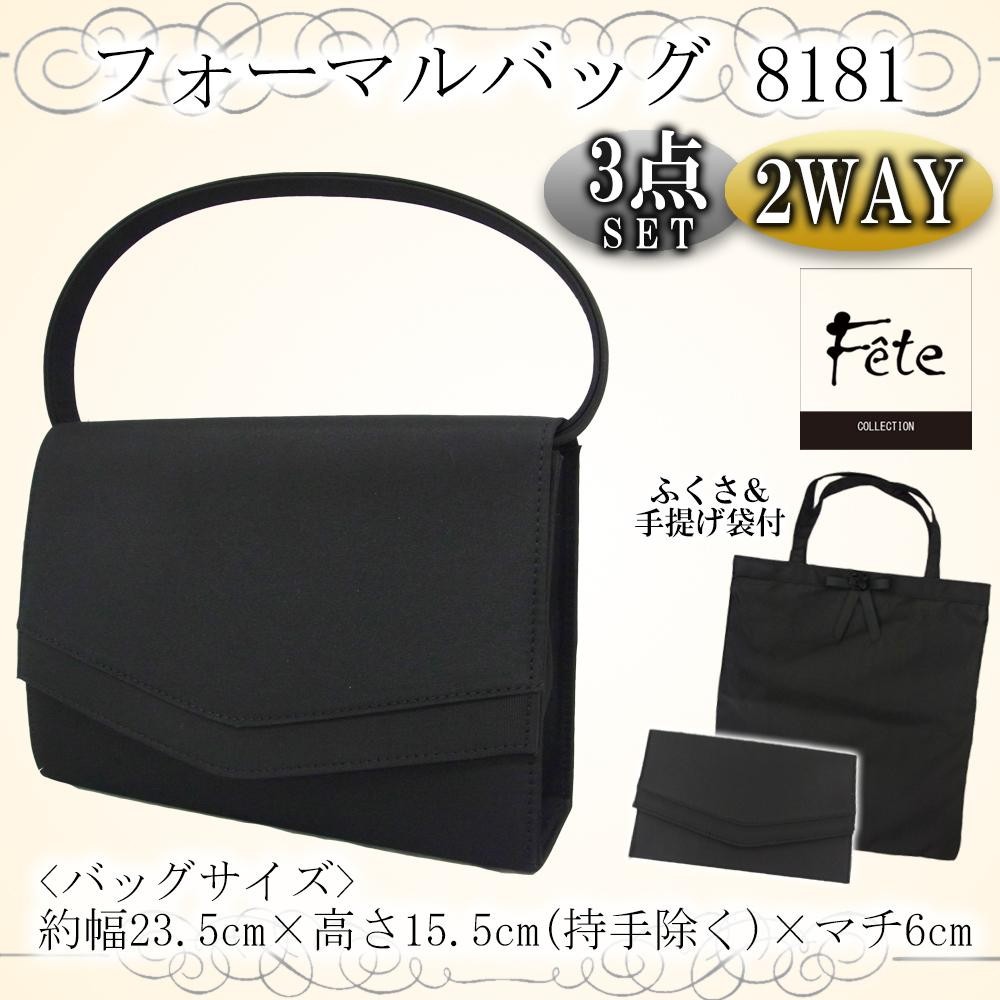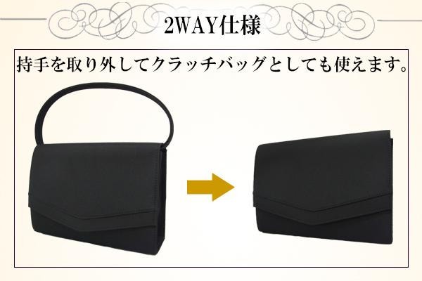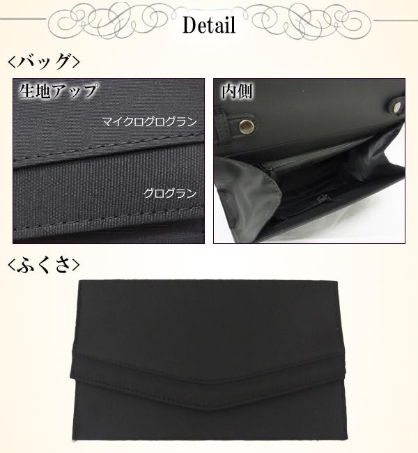 | 持手を取り外してクラッチバッグとしても使える2WAY仕様のフォーマルバッグに、ふくさ、手提げ袋が付いた3点セットです。ふくさと手提げ袋もバッグと同じマイクログログラン・グログラン生地を使用し、シンプルに仕上げています。 |