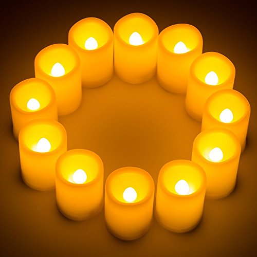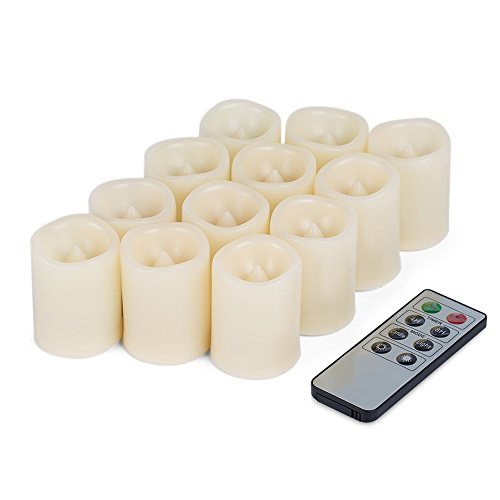 Kohree Set of 12 Flameless Votive Candles Pillar LED Candles with Remote & Timer, Batteries Included, Wavy-edge, Yellow Color