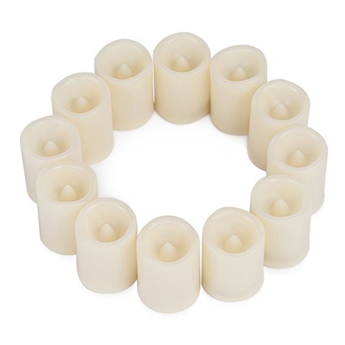 Set of 12 unscented, melt edge, remote control votive candles, sizes: 1.5 "x 1.9"