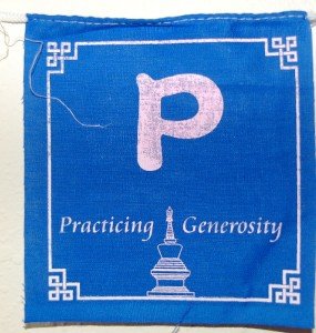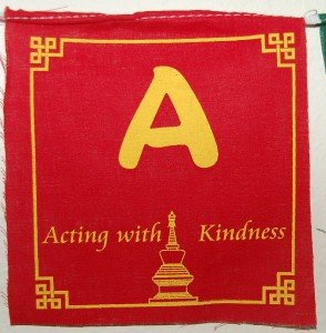 There are 5 small prayer flags on the roll and there are five different colors which are blue, white, red, green and yellow and they represent five wisdom buddha and five elements