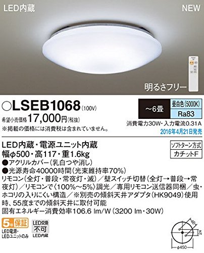 Lamp) Toning function: No nightlight: Yes Remote control: Yes Dimension: 500 x height 117 mm Weight: 1.6 kg Inclined ceiling Correspondence: yes (* Can be mounted on an inclined ceiling up to 55 degrees when using optional slanting ceiling adapter)