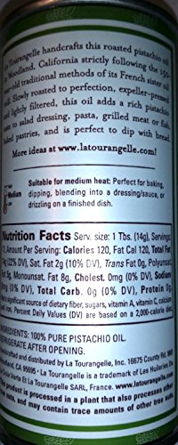 -. Feature : 100% pure, roasted, expeller-pressed Pistachio Oil (produce in California by La Tourangelle) / 8.45oz Tin / Pack of 2 / made in USA