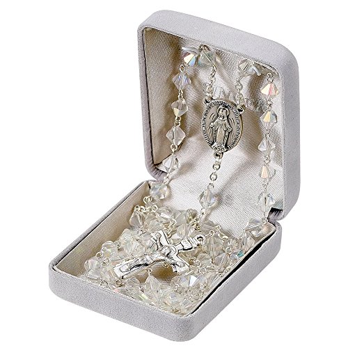 -. Feature : Beads - Glass - 7MM / Rosary - 35 Inch (L) / Crucifix and Centerpiece - Silver Tone / Comes in Jewelry Gift Box