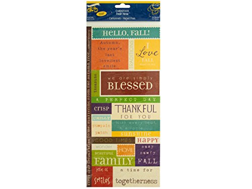 Perfect for scrapbooking, decorating and general craft use, this charming 34-piece fresh verse embossed fall cardstock pieces set features autumn words, phrases and quotes in various sizes, colors and fonts. Perforated sheet measures approximately 5.5; X 12;. Acid free. Comes packaged in a poly bag with a header card.Feature