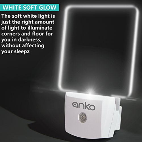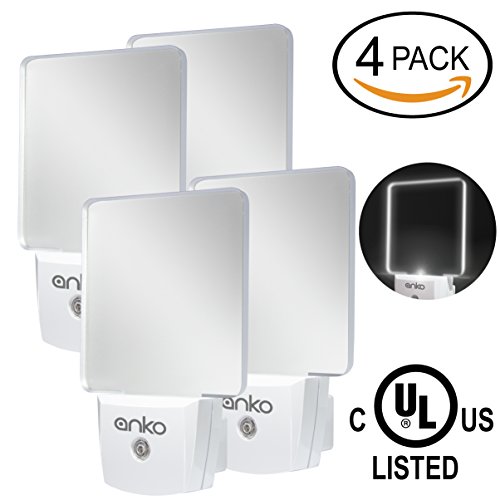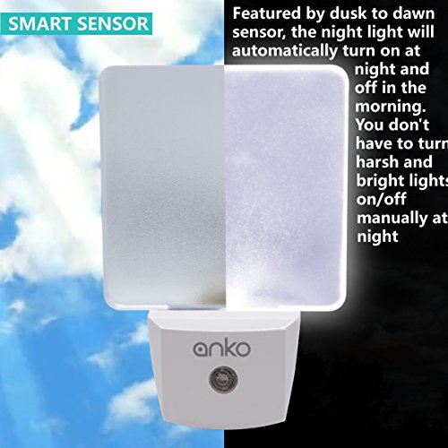 LED Night Light, ANKO UL Listed Plug & Play Smart Automatic Safe Light with Dusk to Dawn Sensor, Save Energy and Convenience for Hallway, Bathroom, Bedroom, Kitchen, Stairways etc. (White-4 PACK)
