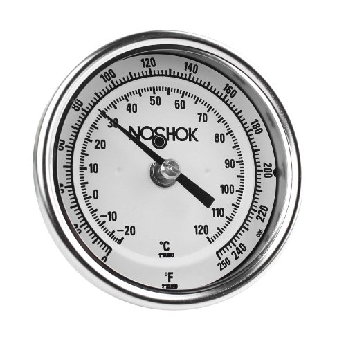 NOSHOK 300 Series 304 Stainless Steel Instrument Type Dual Scale Bi Metal Thermometer with Back Mount, 2-1/2" Stem, 1/2" NPT Connection, 3" Dial, 0-250 F Temperature Range