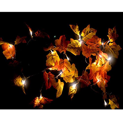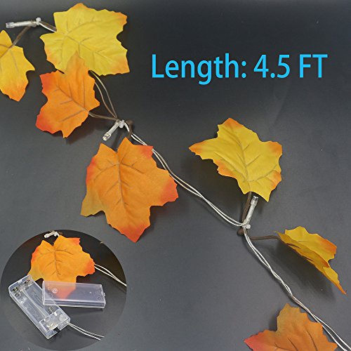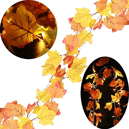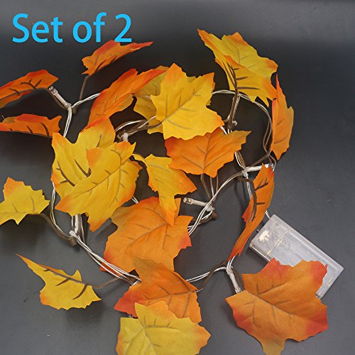 Trasfit 2 Pack Battery Powered Lighted Fall Garland 4.5FT 10 LED Autumn Maple Leaves Garland - (Warm White)