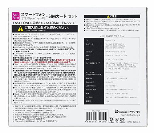 원본상품명: fastfone SIMフリスマトフォンとデタSIMのセット LTEモデル ZTE Blade Vec 4G + Pointy デタSIM FS-02P4G
