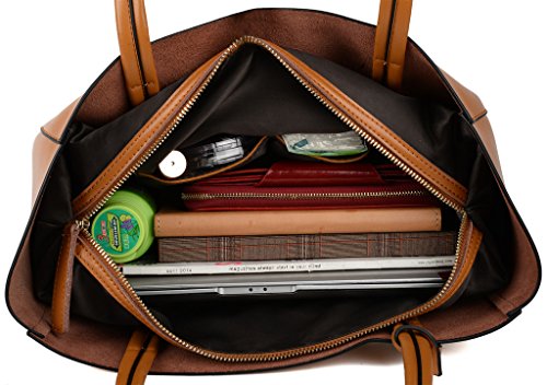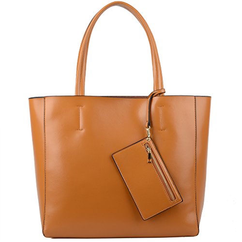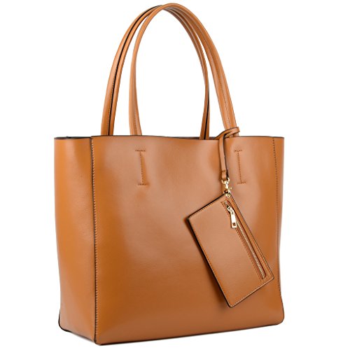 YALUXE Women's Portable Large Leather Tote Shoulder Bag with Coin Purse