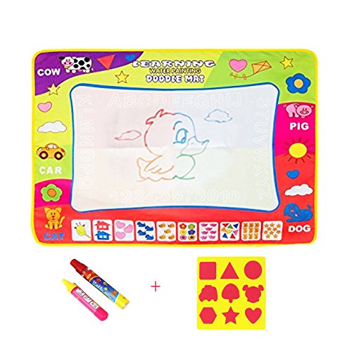 Feature: *This is the perfect art travel toy for indoor and trips: Just fill the pen with water, and create on the magic mat. Kids are fascinated as colorful images spring up, then slowly fade away. With fabric boarders for soft play, you can let your child's imagination run free with the never ending, no mess.