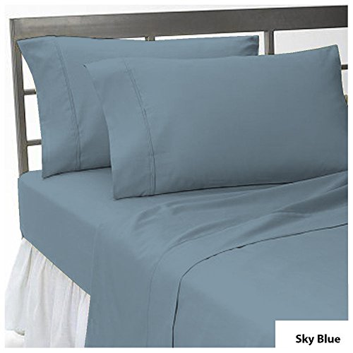 4 PC Sheet Set 8-10 inches Extra Deep Pocket Solid Pattern 100% Egyptian Cotton 500 Thread Count USA Bedding Sheet Set Size Queen Color Sky Blue