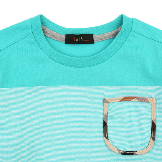 ■상품설명-경쾌한 커러감의 라운드넥 티셔츠-하우스체크 포켓으로 포인트를 줌