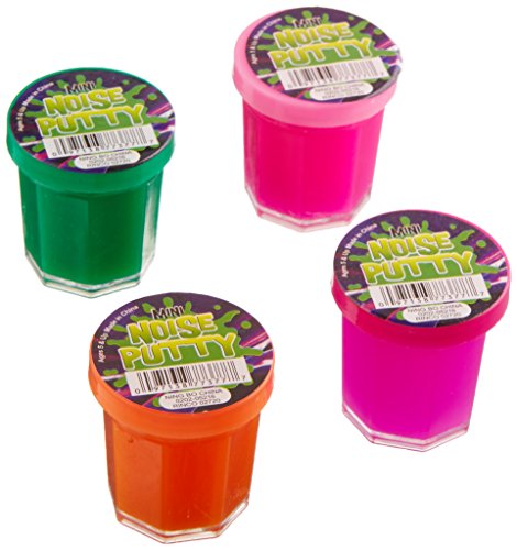 These mini noise putty containers are gross and goopy party favors. Squish and poke the putty to make farting sounds--kids love these noisy toys. Noise putty containers are 1 1/4" Assorted rainbow colors. 4 dozen. - 1.8 pounds Manufacturer Recommended Age: 36 months - 18 years.Feature