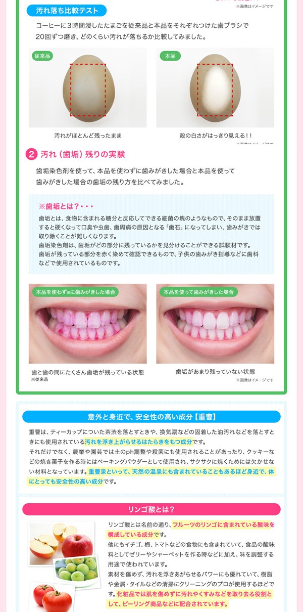 重曹とリンゴ酸のWパワーで使うたび白い歯と健康な歯ぐきに。電動歯ブラシにも対応。ミントのさわやかな香り |