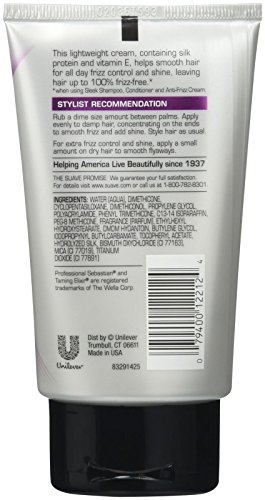 Suave Professionals Sleek Anti-Frizz Smooth and Shine Cream is designed to be used on dry hair to create shine for that perfect surface finish. Suave Professionals Sleek Anti-Frizz Smooth and Shine Hair Cream has a lightweight formula, with silk protein and vitamin E, that helps smooth hair for all day frizz control and shine, leaving your hair up to 100% frizz-free.