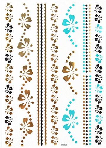 Spestyle New Design hot selling Golden Gold & Silver & Black Metallic Temporary Tattoos stickers Blue Jewelry with butterflies and flowers fashion design