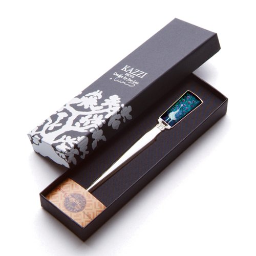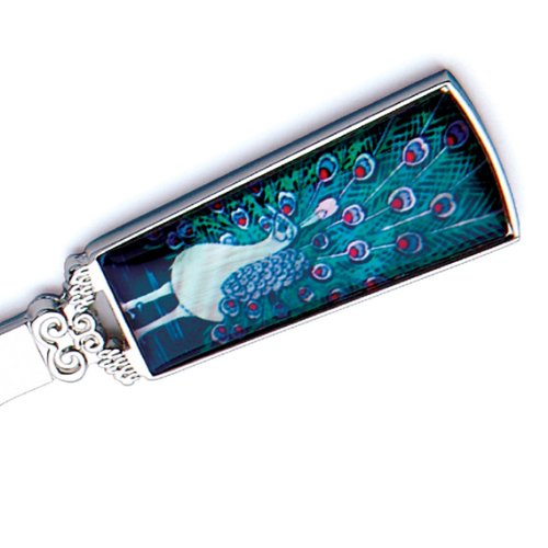 Antique Alive Mother of Pearl Peacock Design Black Metal Steel Knife Office Sword Blade Hand Envelope Gift Letter Opener (O110)