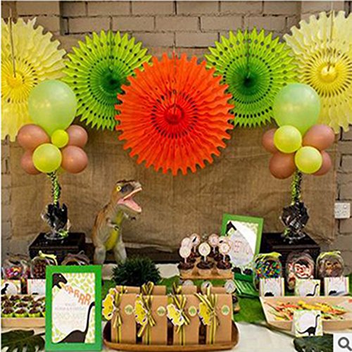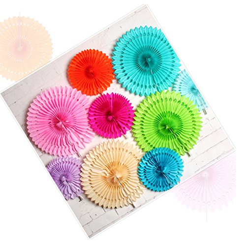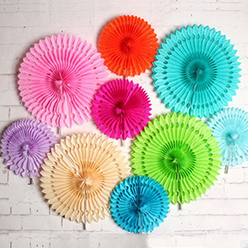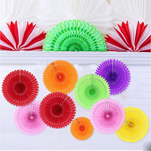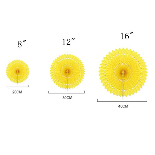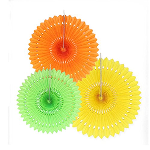 Set of 3 Fiesta Bright Colors Hanging Paper Fans Rosettes Party Decoration 8" 12" 16" Various Sizes(Yellow,Orange,Green)