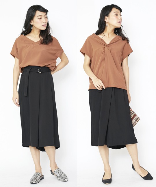 フロントのツイストディテールがポイントになった2WAYブラウス。