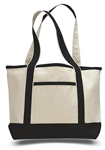 Heavy Canvas Deluxe Tote Bag Medium Size Boat Tote Bag 12oz. Thick Canvas Reusable Bag with Interior Zipped Pocket - TG258 (1, Black)
