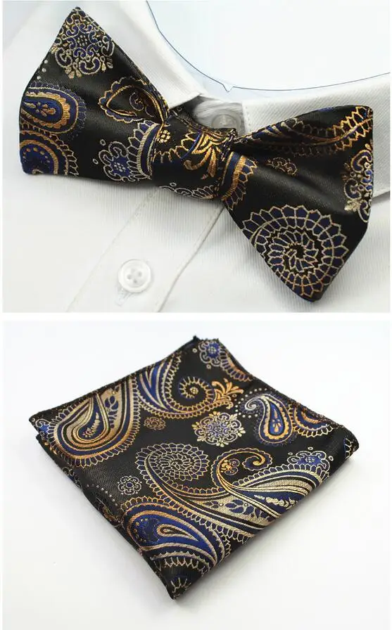 Item Type:Ties Brand Name:GUSLESON Department Name:Adult Style:Fashion Ties Type:Neck Tie Set Material:Silk Model Number:New Quality Self Bow Tie and Hanky Set Gender:Men Size:One Size Pattern Type:Paisley Mens tie set:Self Bow tie and Hanky Quality Self Bow Tie For Men:Men tie for wedding Total Length:98.5cm Width:6.1cm (widest point) Package:Opp Bag