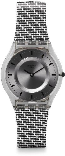 -. Title : Swatch SFM127 Pure Net Grey Black Ana Dial Fabric/Leather Band Women Watch NEW