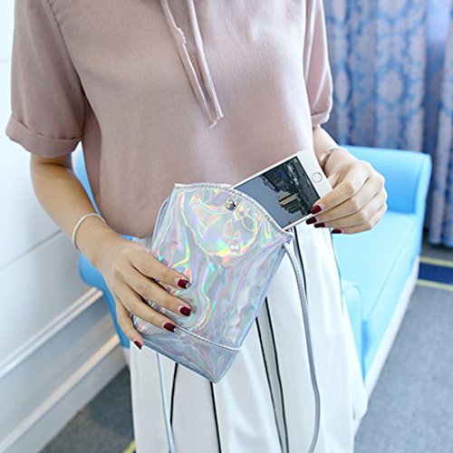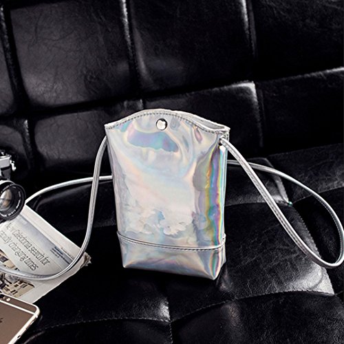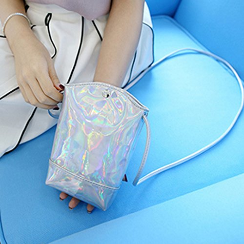 Orfila Mini Holographic PU Leather Crossbody Bag Colorful Laser Drawstring Cell Phone Pouch Shoulder Bag