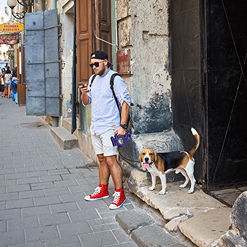 Product weight: 0.34kg Product size (L x W x H): 5.51 x 9.45 x 1.97 inches Package Contents: 1 x Pet Retractable Leash, Blue Color (Poop-bag, LED Flashlight, AAA batteries not included)