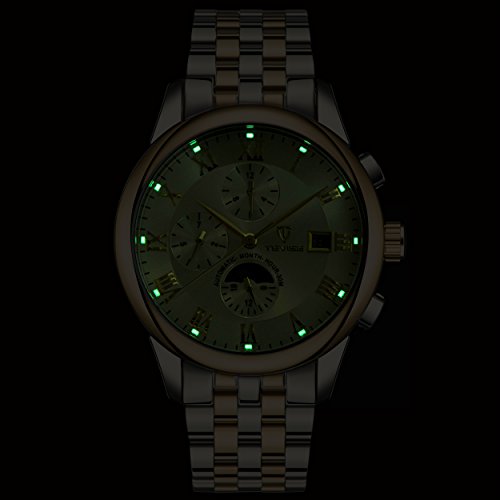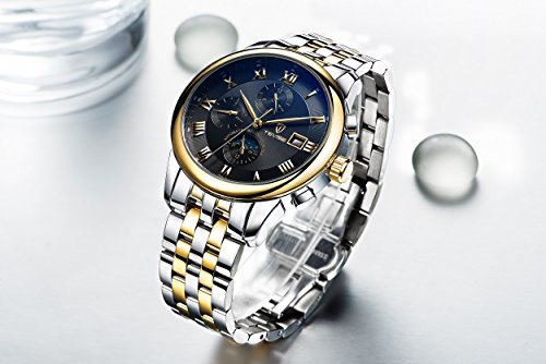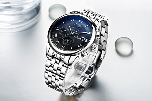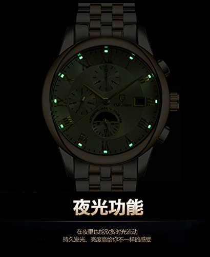 -. Feature : Table mirror made of imported mineral glass, anti scratching wear-proof, rome numerals scale, high clarity, simple classic. / Waterproof function is stronger. Imported stainless steel material, never fade precise combination of case. / High quality stainless steel buckle design, very easy to adjust to fit your wrist. / Fashionable design include 3 small dial: automatic moon change to sun between 24 hours, week and month dial. luminous dial, single calendar easy to read. / With high quality gift box, perfect as gifts for your friends or family.