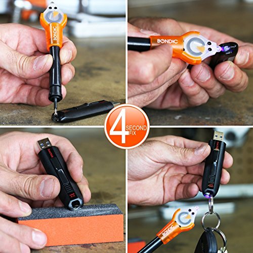 THE BONDIC® PRINCIPLESBondic® is the world's first liquid plastic welding tool! It's not a glue, so don't use it as one! It's the ONLY product that works where glue fails! It's a liquid plastic that never dries until you want it to! Simply squeeze out the desired amount and use the UV LED Light to cure it in 4 seconds and it's done, the world's fastest drying bond! You'll be amazed how fast it works!