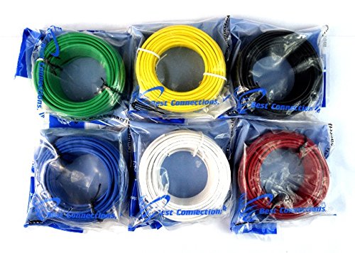 - 14 Gauge, 6 Rolls, 50' FT Each Roll; Colors: Red, Black, White, Blue, Green, Yellow