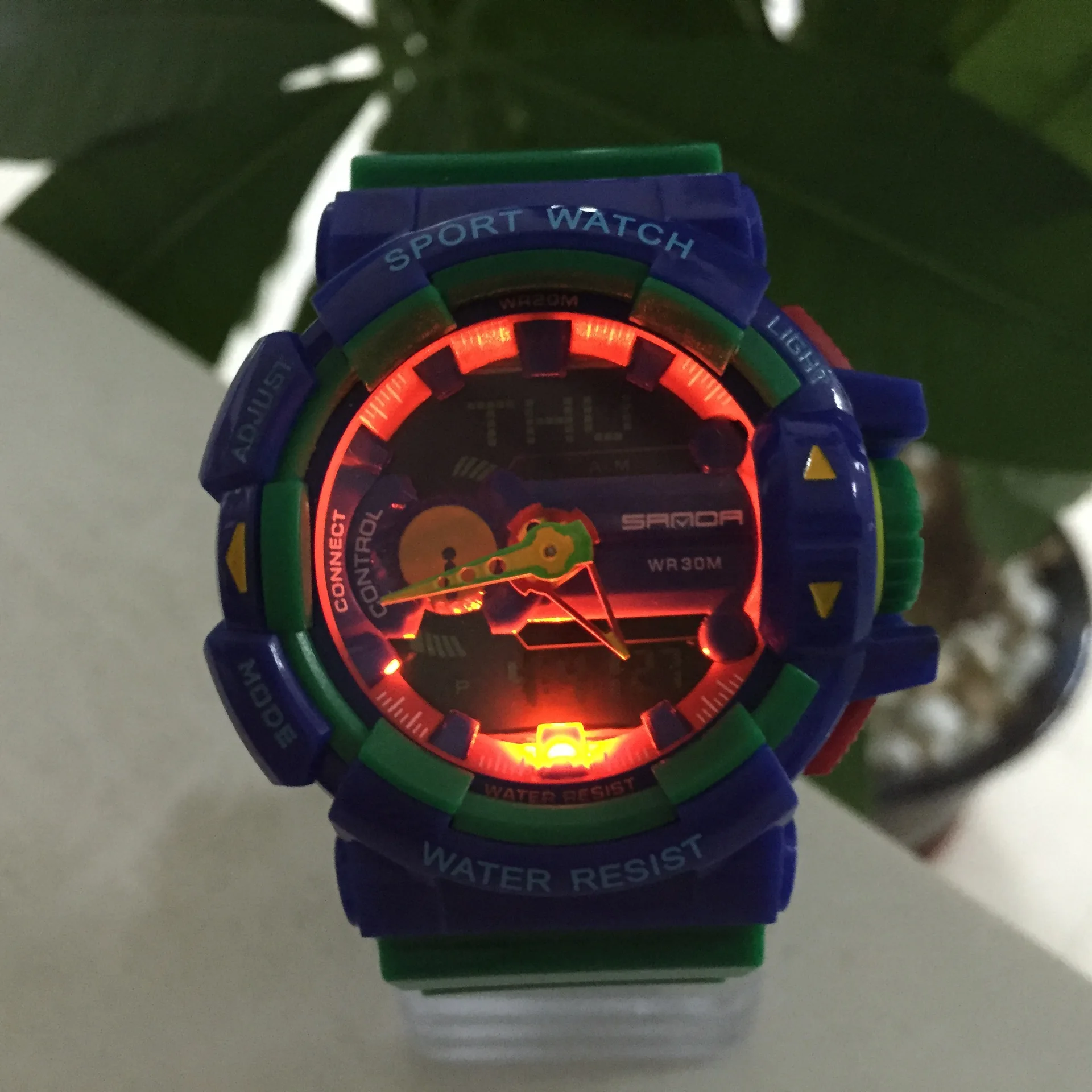 Feature:Stop Watch,Back Light,Shock Resistant,LED display,Chronograph,Complete Calendar,Water Resistant,Alarm