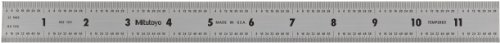 Mitutoyo 182-125, Steel Rule, 12"/300mm ( 1/32, 1/64", 1mm, 0.5mm), 3/64" Thick X 1" Wide, Satin Chrome Finish Tempered Stainless Steel