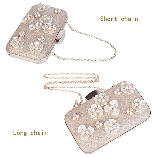 -. Title : Z&X Women Glitter Flower Clutch Evening Bag Wedding Party Handbags Purse Champagne