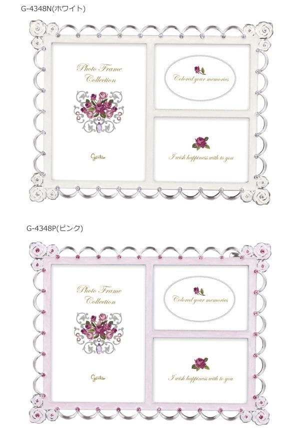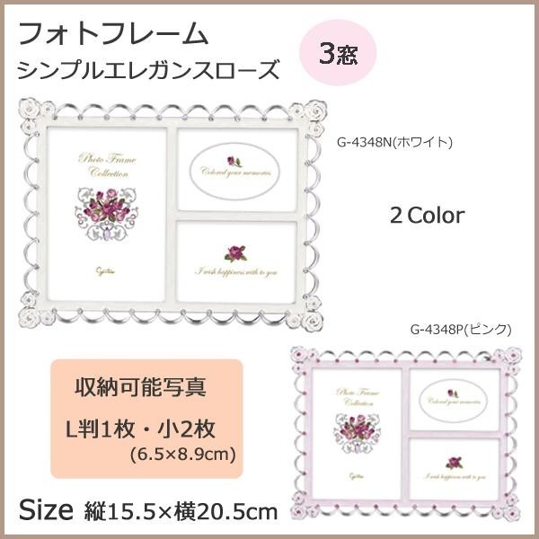 バラのモチーフは結婚のお祝いやお誕生日の贈り物にも最適です。 製造国:中国 素材・材質:亜鉛合金、ガラス、エポキシ、ラインストーン 商品サイズ:縦15.5×横20.5cm 重量:350g 仕様:収納可能写真:L判1枚、小(6.5×8.9cm)2枚スタンド付 ※サプライヤー直送品  ご注文後2~3営業日後の出荷となります【商品名】フォトフレーム 3窓 シンプルエレガンスローズ G-4348N(ホワイト)